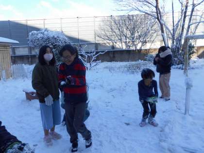 雪が積もった!!ということで、急遽雪遊びをしました。子ども達は夢中になって遊んでいました。