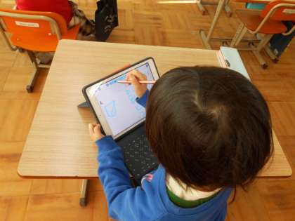 生活科の学習の様子です。「冬」について発見したことをタブレット端末に記録しました。寒波がやってきているので、子どもたちの中に、冬のイメージがとても残っているようです。