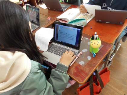 共感した所やいいなと思った所をロイロノートのカードに書き込み,友達に送りました。