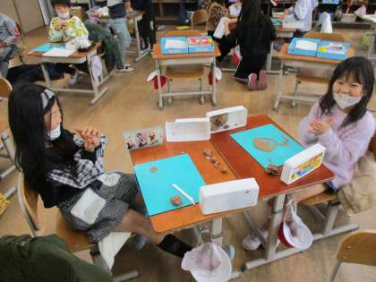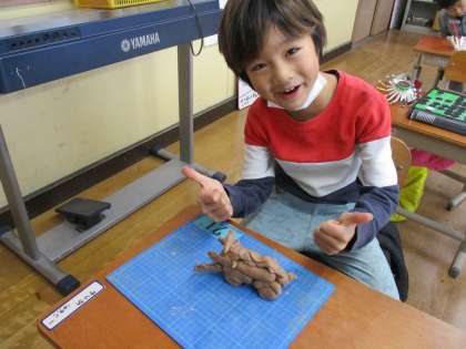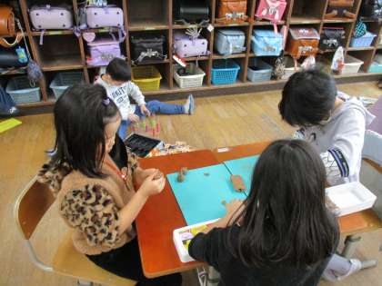 雪のため運動場で遊ぶことができなかったので粘土をして遊んでいました。