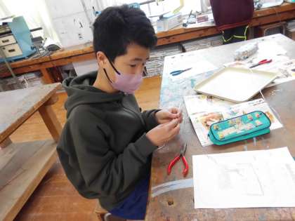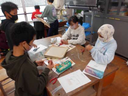 将来の自分をイメージし,針金と粘土で小学校最後の立体作品作りに取り組んでいます。