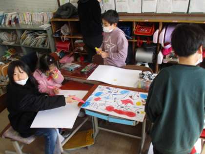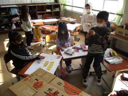 お店の看板を作ったり、ルールの説明の用紙を作ったりとどのグループも精力的に活動を進めています。
