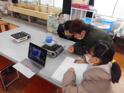 ものの温まり方の学習をしています。今回は水の温まり方について調べました。みんなしっかりと実験し、考察することができていました。