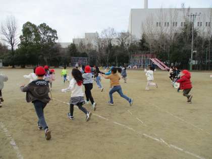 冬となかよしの学習で、風を使って遊ぶおもちゃを作って外で遊びました。