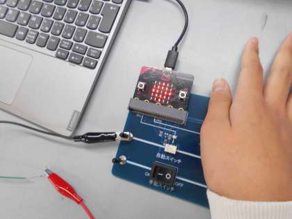 理科の時間には,マイクロビットを使って,さらにいろいろなプログラムを子ども達が考え,作りだしていました。