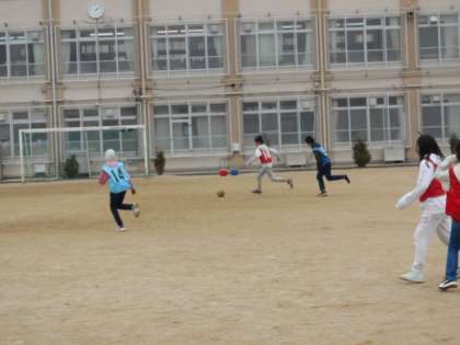 男の子も女の子も積極的にボールに向かっていき,1時間たっぷりとクラスみんなでサッカーを楽しめました。