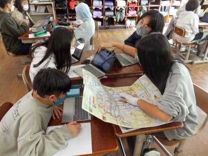 グループも決まり,どこに行こうかグループごとに話し合って行き先を決定しています。