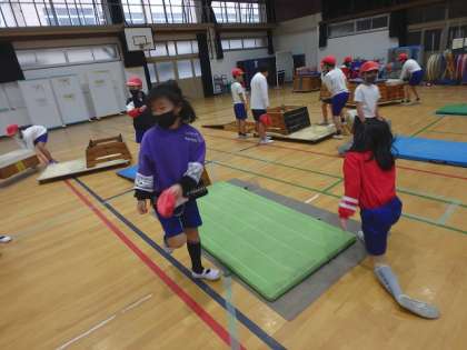 跳び箱の学習が始まりました。この日は準備の仕方と学習の進め方を確かめました。