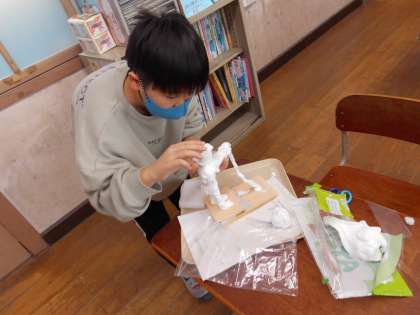 将来の自分をイメージして,針金や粘土を使いながら,なりたい自分を製作しています。