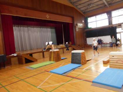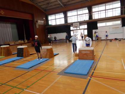 小学校最後のとび箱運動で,たくさんの技にチャレンジしてほしいと思います。