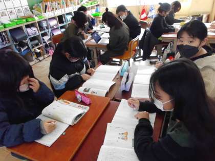 国語では、「生活調査をしよう!」ということで、それぞれのグループに分かれてアンケートをとり、その結果から分かったことをまとめています。結果をみて、どんな呼びかけをすればいいか考えていきます。