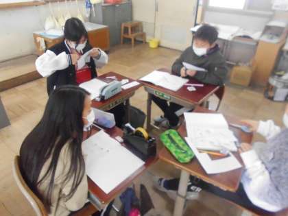 算数の学習では、新しく直方体と立方体について学習しています。正方形と長方形を組み合わせて直方体と立方体を作ってみました。実際に作ることで、それぞれの特徴を捉えることができました。