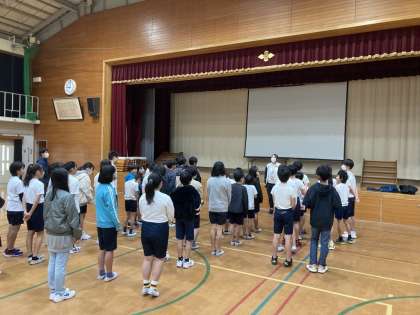 池田小学校で支部交流会がありました。この会場では、池田、日野、石田の3校で試合をしました。初めての試合にドキドキしている様子でしたが、帰りには「もっとバスケがしたい!」と言っていました。楽しい思い出ができてよかったです。