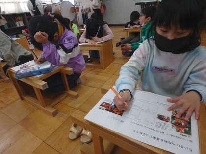 「祇園囃子」と「ねぶた囃子」を聴き比べ、それぞれの音楽の特徴について話し合いました。使われている楽器やリズムに注目し、それぞれの音楽の紹介文を書きました。