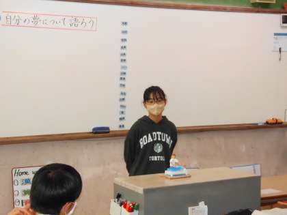 子ども達は,外国語の学習で学んだ表現を使って自分の将来の夢についてしっかり語ってくれました。