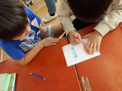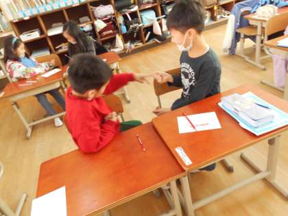 重ねられる物は角をそろえて比べればいいこと、重ねられない物はマスの数を数えることで比べられることに気づきました。