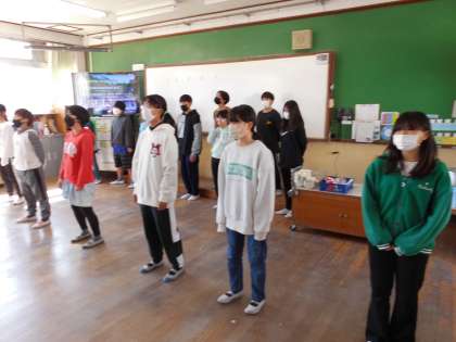 「6年生を送る会」では、6年生は「最後のチャイム」の歌にそれぞれの想いを込めて歌うことにしました。歌詞の意味をしっかりとかみしめながら、1年生から5年生までのみなさんに届けようと練習をしてきました。