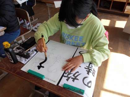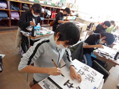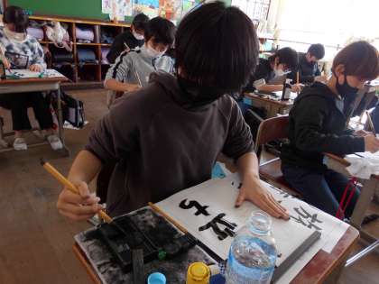 今までの学習したことを生かして「旅立ちの時」という書写を書きました。卒業を感じるようになってきた6年生。しっかりと心をこめて書いていました。