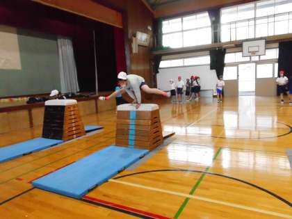 とび箱の学習もあと少し。学習を重ねていくごとに出来る技も増えてきました。何回も挑戦していく姿が素敵です!