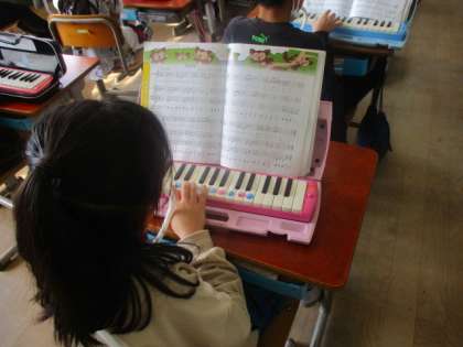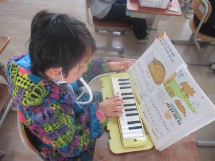 「こぐまの2月」「アイアイ」などの曲を鍵盤ハーモニカで演奏しました。