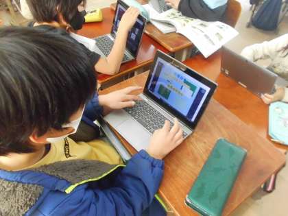 今まで学習してきたことを生かして、宮津市、宇治市、舞鶴市の特色をロイロノートを使ってチラシにまとめました。それぞれの都市の特色をキャッチコピーに表し、その理由を写真や文章でまとめました。1年間を通して、まとめ方が上手になりました。