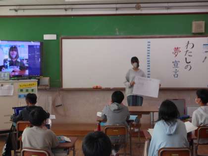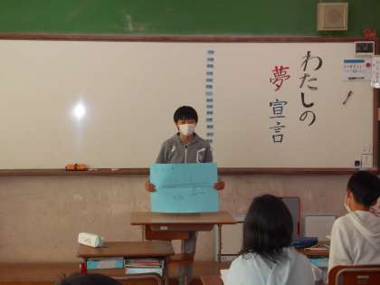 総合的な学習の時間に取り組んできた「夢に向かって歩もう」のラストの活動として,自分の将来の夢を一人一人が語る「わたしの夢宣言」のスピーチをおこないました。