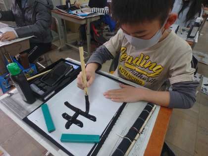 これまでの学習を生かして、自分が選んだ字を書きました。それぞれにその字を選んだ理由があったようで、自然と交流を始める子どもたちでした。