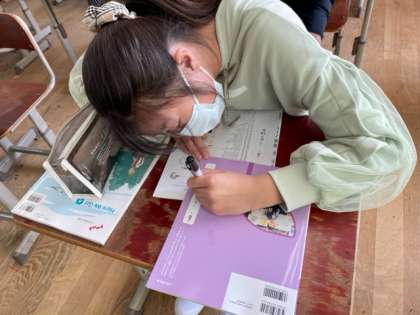 6年生で学習する教科書を配り、簡単にどのような学習をするのか確認しました。