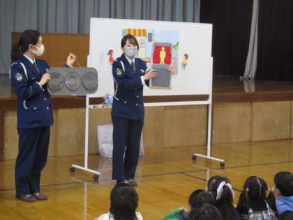 山科警察署 警察官に来ていただき、交通安全教室をおこないました。