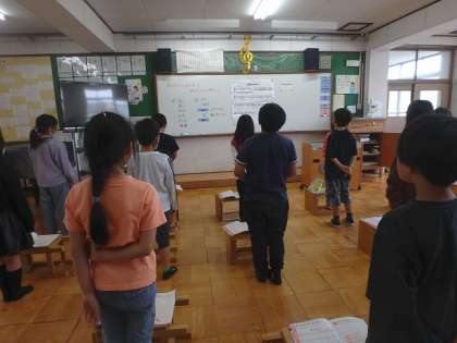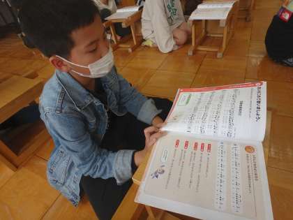 「花束をあなたに」の曲を歌いました。学習のはじめに行ったリズム遊びも楽しそうに取り組んでいました。