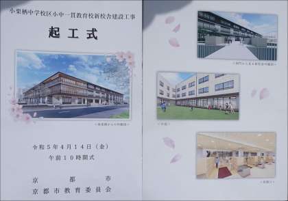 京都市長、京都市教育長、京都市議会議長を初め、たくさんの方にお越しいただき、令和7年度開校予定の小栗栖中学校区小中一貫教育校新校舎建設工事起工式が執り行われました。この小栗栖の地のシンボルとなるよう、工事の安全を祈りつつ盛大に行われました。
