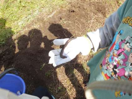 土の中から大きなミミズも出てきました。