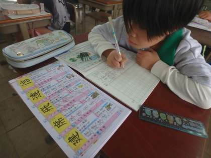漢字ノートの使い方を確かめました。この日の宿題は、どの子も本当に丁寧な字で書かれていました。素晴らしい!継続していきましょう!