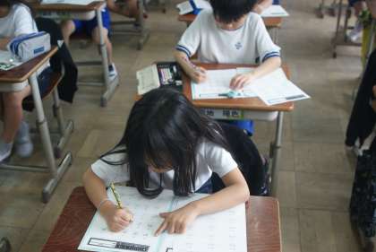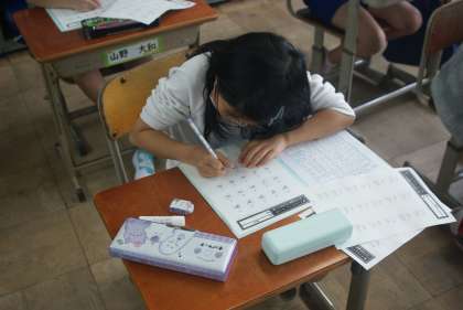 国語では、ローマ字の学習に取り組んでいます。まずはローマ字表からきまりを見つけて、表を見ながら読めることを目標に取り組んでいます。自分の名前を書きたいと自主的に取り組んでいる子どももいます。これからしっかりと定着させていきたいと思います。