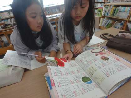 春の言葉を調べました。知ったことを友達と自然と交流している姿がすてきでした。