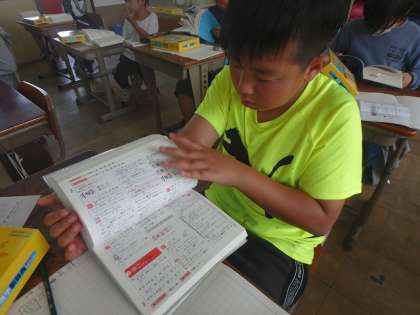 漢字辞典の使い方を学習しました。習った索引の仕方を使い、早速漢字を引いてみることに…みんな、素早く調べたい字を引くことができていました。