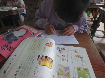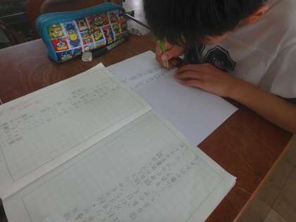 調べたことをまとめ、画用紙に書きました。調べたことの中から、必要なことを選び、よりよく伝わるように文章を工夫しました。春を感じる絵も添えられ、すてきな春の言葉カードができました。