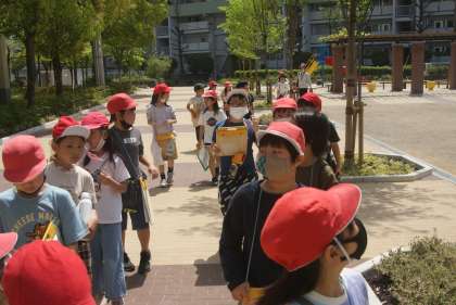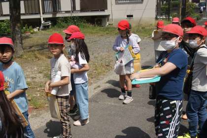 社会の学習では、校区の様子を調べています。校区には公園や図書館など公共施設があったり、お店などがあったりします。もっともっと校区のことを知るために校区探検にいきました。知っている場所もあれば、初めて来た場所もあり楽しく学習できました。
