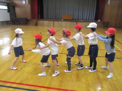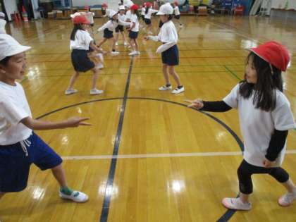 体ほぐしの運動あそびでは、ペアやグループやみんなで楽しくなかよく体を動かしました。