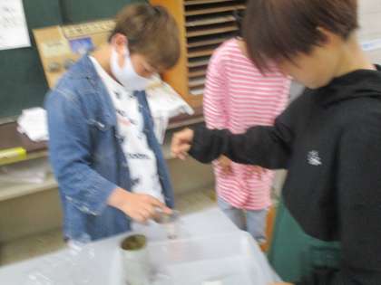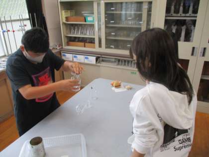 この日の実験は石灰水を使って、ろうそくを燃やす前と燃やした後の空気にどのような違いがあるのかを調べました。