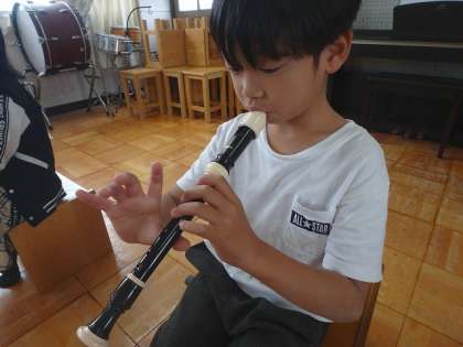 リコーダーの指使いや息づかいの復習をしました。低い音もきれいに出すことができるようになってきましたね。4年生では、「サミング」を使って、高い音を出す演奏方法も学習します。楽しみにしておいてくださいね!