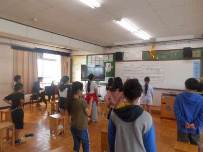 音楽の学習では,毎回いろいろな歌を歌唱しています。