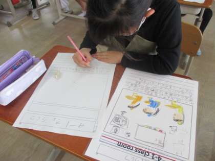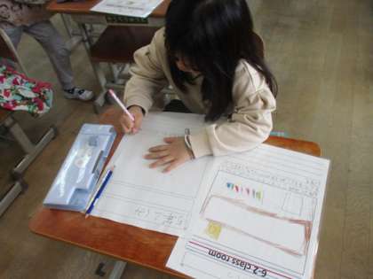1年生の学校案内に向けて、各教室の紹介ポスター作りに取り組んでいます。