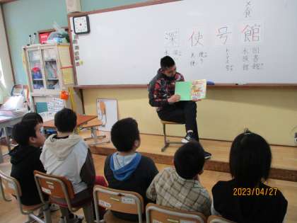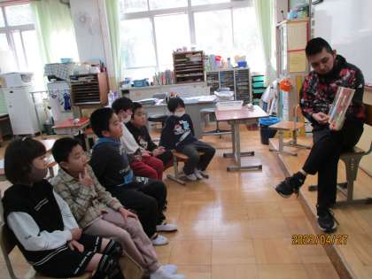 みんなで「のぞいてみると」というしかけ絵本を読みました。のぞき穴を見るとウサギに見えるけれど・・・実はロバだった!など、めくる度に驚きがたくさんの楽しいお話でした♪