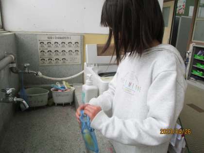 5年生になって委員会が始まりました!委員の仕事としてせっけんの補充をしています。責任をもって取り組んでいる姿はとっても素敵です☆
