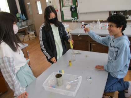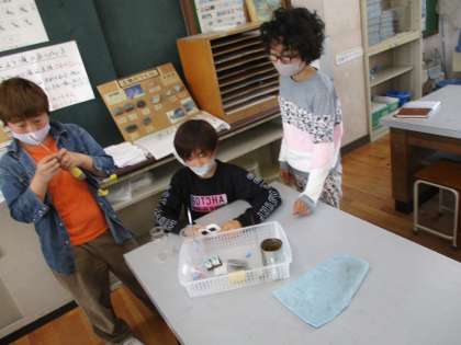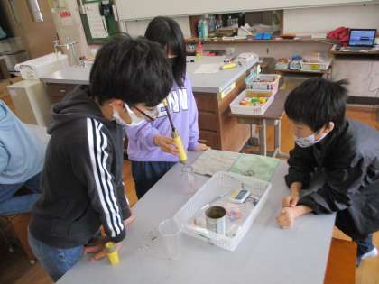 気体検知管を使って、ものを燃やす前と後の酸素と二酸化炭素の割合について調べました。