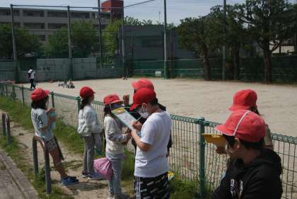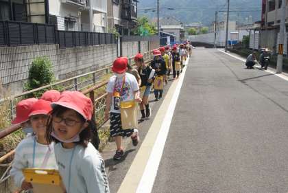 2回目の校区探検で小栗栖方面に行きました。みんなルールを守ってしっかりと探検することができました。お気に入りの公園も教えてくれました。