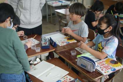 虫眼鏡を使って、「ホウセンカ」「オクラ」「大豆」「ひまわり」の種を観察しました。細かいところまでしっかりと観察することができました。