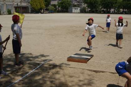体育の学習では、はばとびに取り組んでいます。タタターンのリズムで跳ぶことができるようにこれからもがんばっていきます。