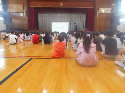 全校児童が体育館に集まって、校長先生の話を聞きました。